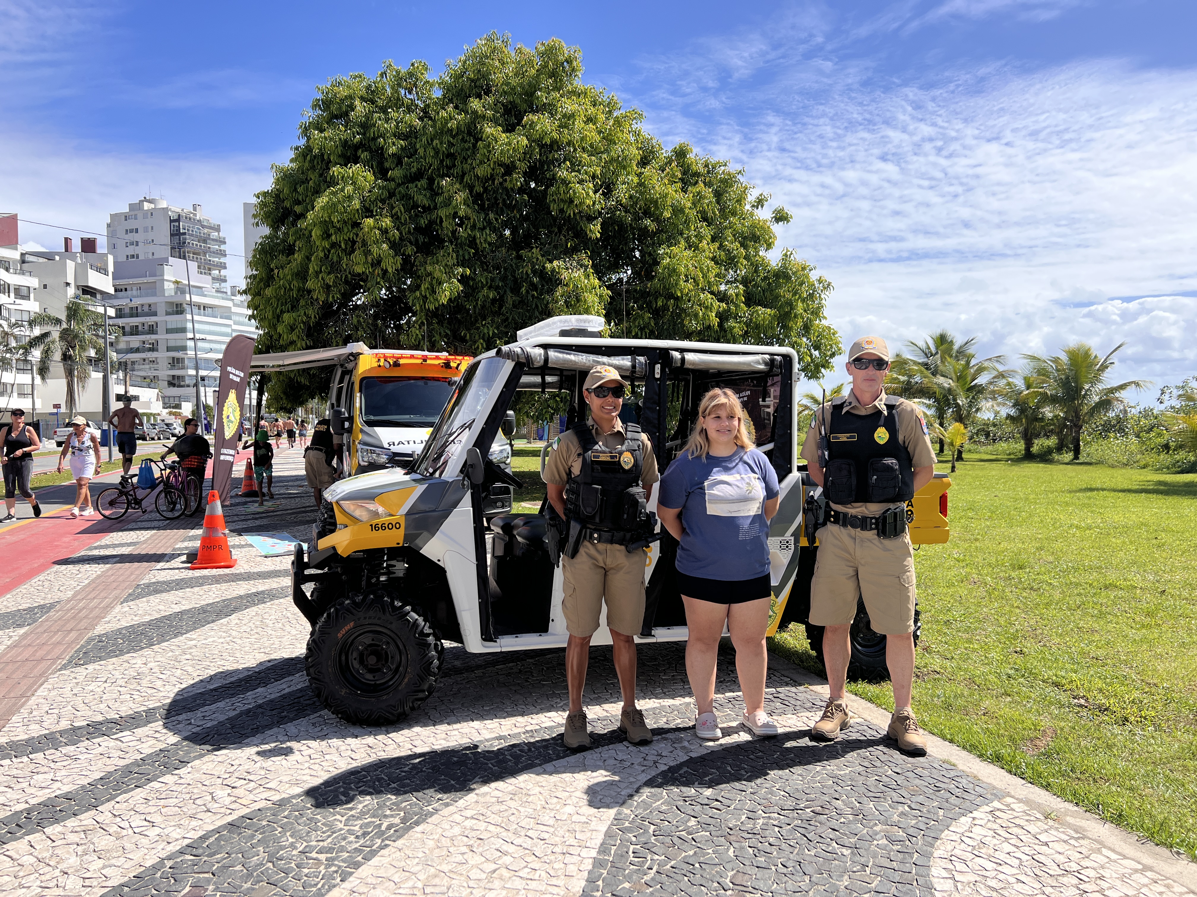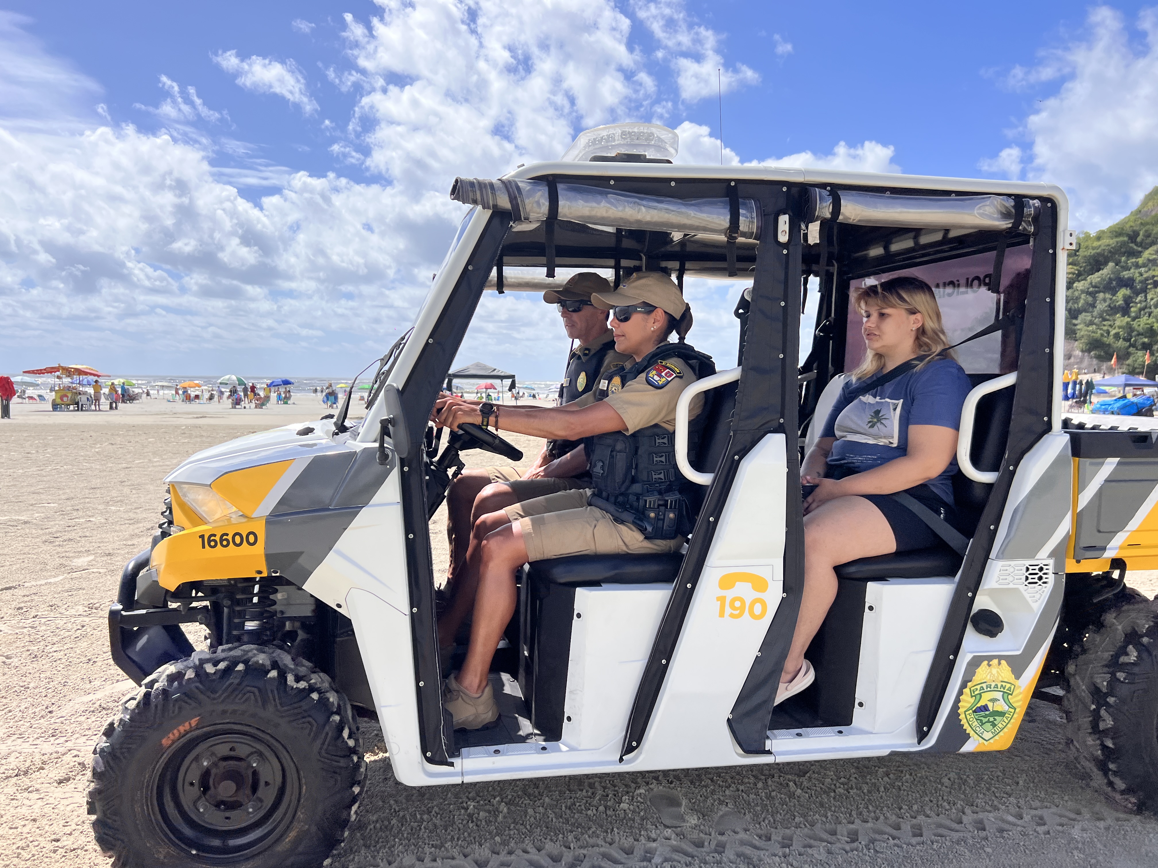 Na manhã desta quinta-feira (22), a Polícia Militar do Paraná (PMPR) protagonizou um momento marcado pela empatia, sensibilidade e aproximação com a comunidade ao realizar o sonho de mais uma admiradora da corporação. Juliana, fã da Polícia Militar, teve a oportunidade de viver uma experiência especial: andar no UTV da PMPR pelas areias do município de Matinhos, no litoral do Estado.