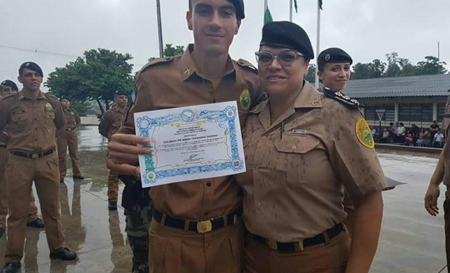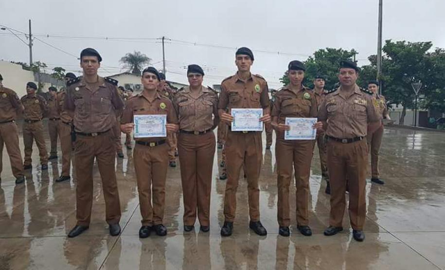 Os três primeiros colocados no CFSd 2017/2018 também receberam uma homenagem. Em primeiro lugar ficou o soldado Everton Luis de Deus Gaudêncio, em segundo a soldado Ana Carolina Machado Ribeiro e em terceiro a soldado Jéssica Grazielli Messa. Os novos soldados da corporação fizeram o juramento regulamentar à bandeira nacional, desfilaram e encerraram o evento com o tradicional fora de forma.