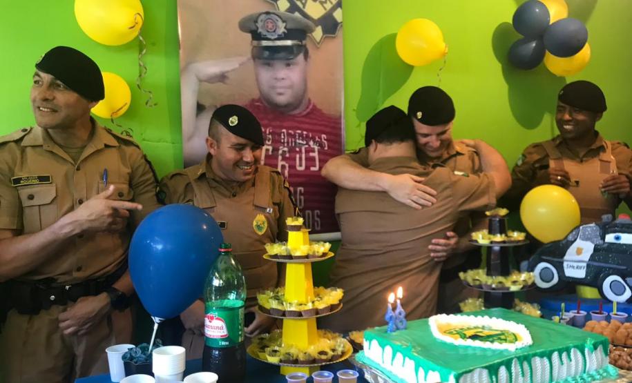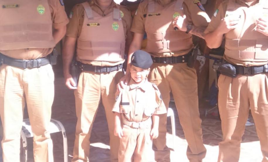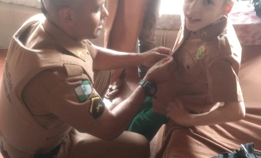 No domingo (09/12), também em Pinhais, um momento ímpar foi a entrega da farda mirim a Rhuan, que mora com a família no bairro Jardim Karla. Segundo o 22º Batalhão, para o menino foi um momento inesquecível receber a farda dos policiais. Ele tem Síndrome de Down e na comunidade é conhecido como Amigão, pelo ajeito alegre e simpático no trato com as pessoas. A equipe da PM chegou no momento da festa de aniversário dele, que rendeu muitos abraços e trouxe descontração e felicidade a todos os convidados.