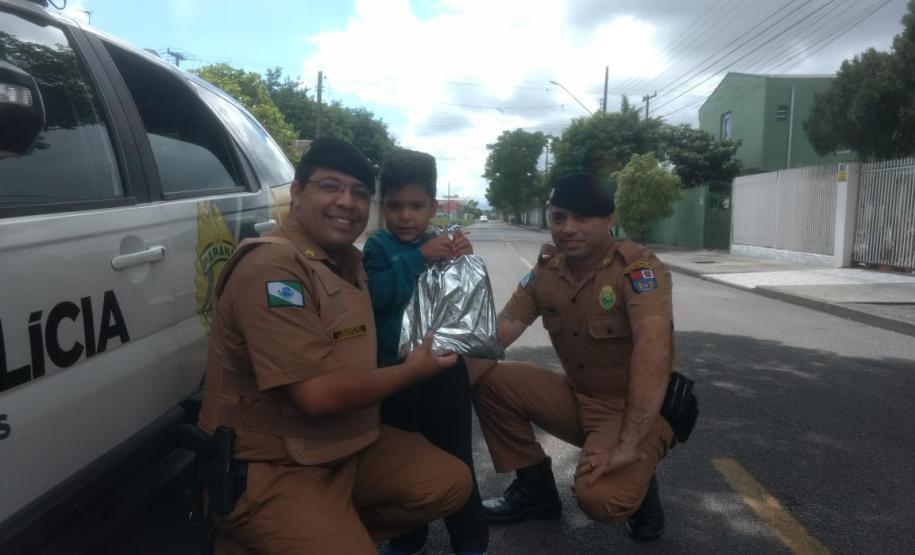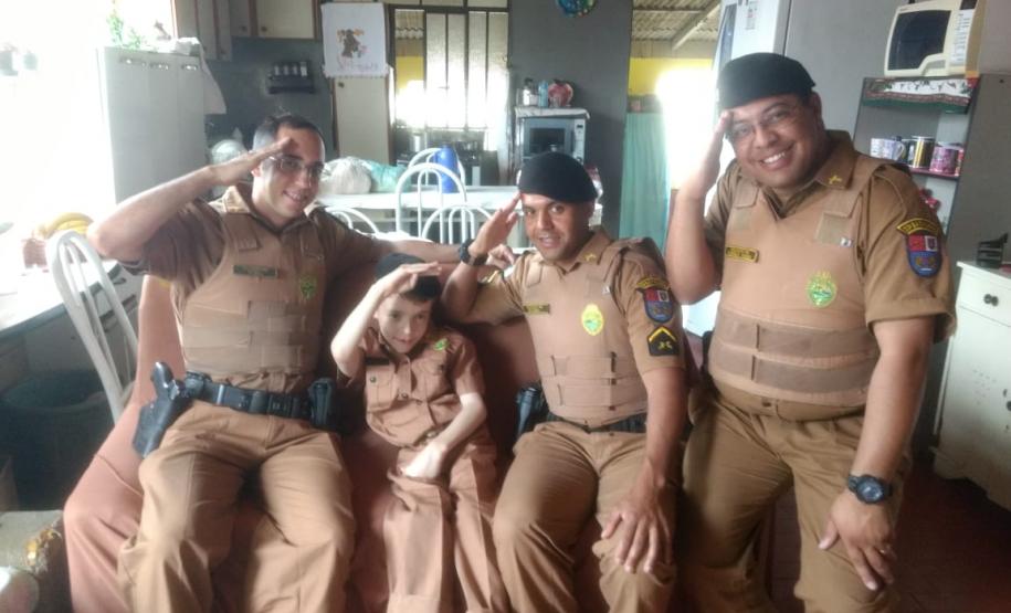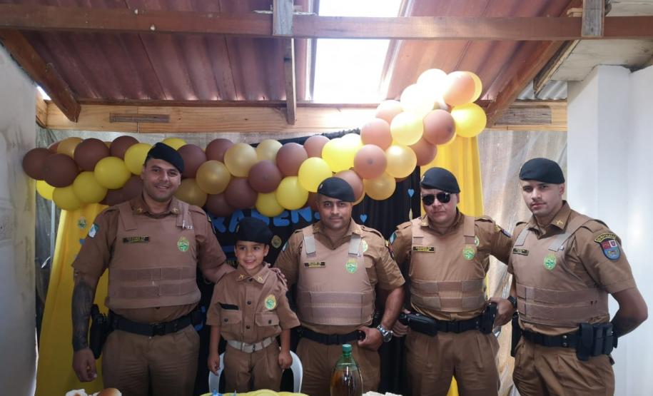 Outra família que fixou feliz com a vista dos policiais militares foi a do garoto João Pedro, que mora no bairro Maria Antonieta, também em Pinhais. A surpresa foi durante a festa de aniversário de 5 anos do menino, que também recebeu uma farda do seu tamanho como presente e recordação. A alegria tomou conta de todos os convidados e os policiais até cantaram parabéns a João.