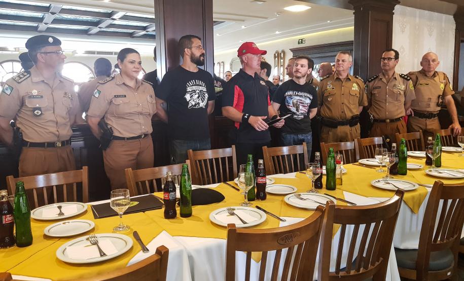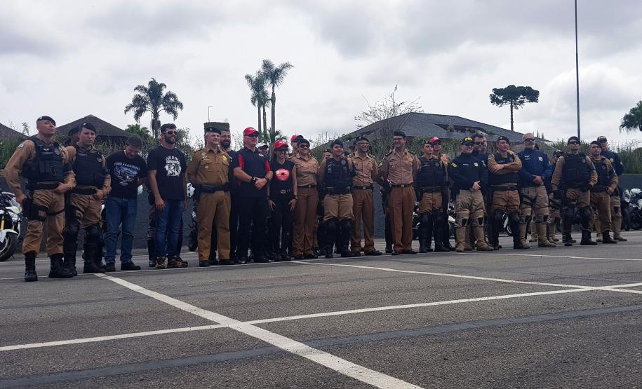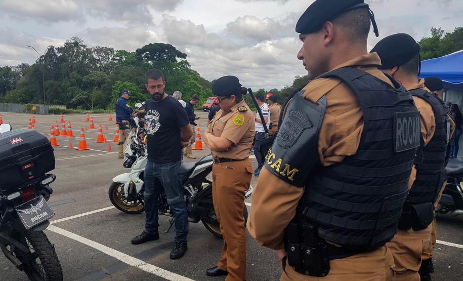 O treinamento faz parte das atividades da campanha Outubro Rosa, organizada pela Polícia Militar e pela concessionária HOG – The One Curitiba Chapter Brasil para arrecadar doações ao Hospital Erasto Gaertner.