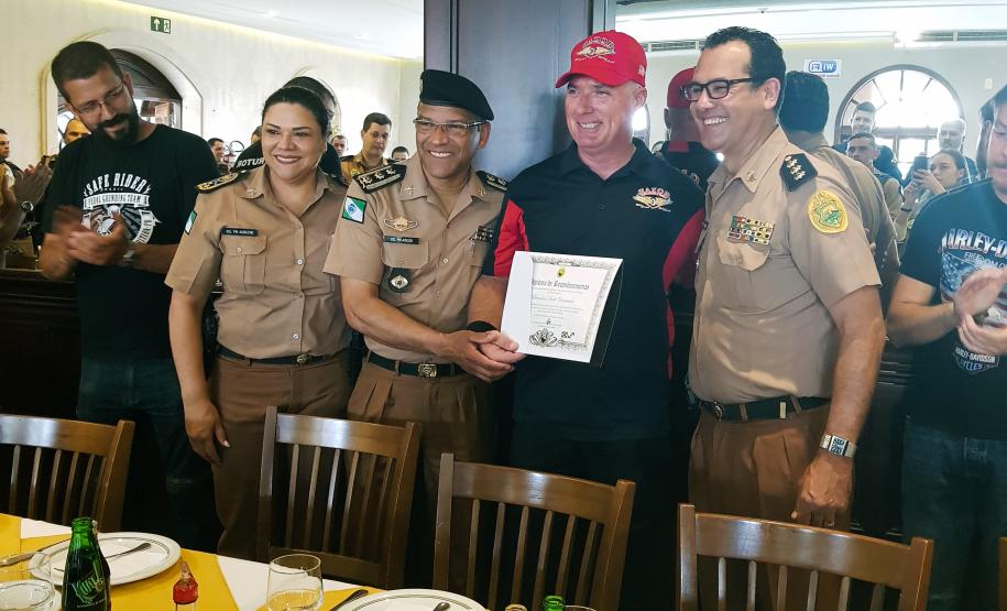 Ao final do treinamento, a Comandante-Geral, acompanhada do Subcomandante-Geral da PM, coronel Arildo Luis Dias, do Chefe do Estado Maior, coronel Antônio Zanatta Neto, do Ajudante-Geral da PM, coronel Reginaldo Silva, do Comandante do Batalhão de Polícia Rodoviária (BPRv), tenente-coronel Erich Wagner Osternack, entregou certificados de agradecimento aos instrutores da capacitação.