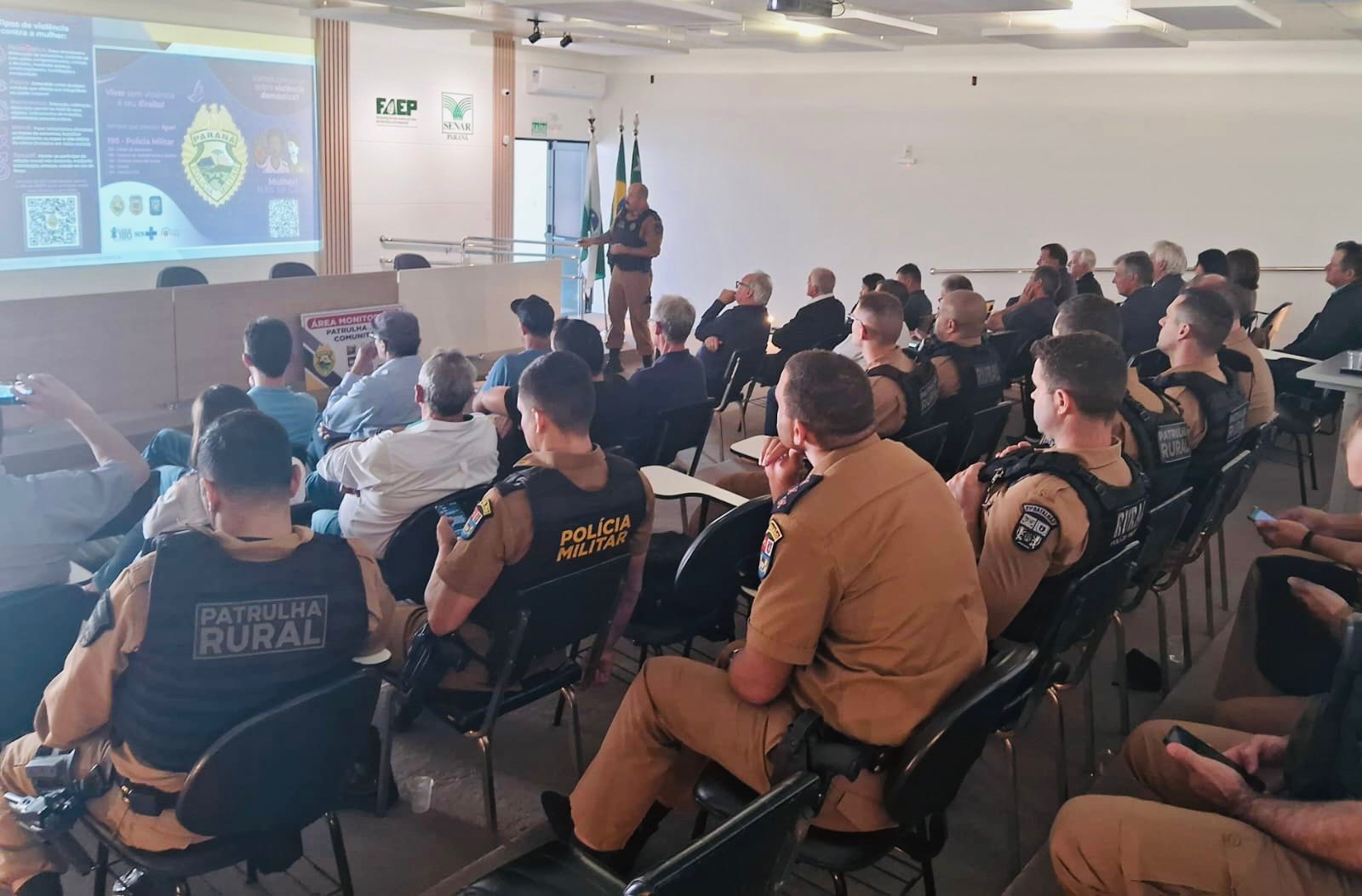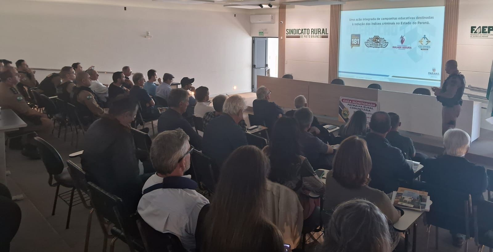 Além dos presidentes dos sindicatos rurais dos oeste e sudoeste paranaense, estiveram presentes nos referidos eventos integrantes da Federação da Agricultura do Estado do Paraná (FAEP), representantes dos poderes legislativo e executivo dos municípios da região, presidentes dos CONSEG’s de Marechal Cândido Rondon, Pato Branco e Toledo (CONSEG Rural), bem como Comandantes, oficiais das seções de planejamento e operações (P/3) e oficiais de ligação da patrulha rural comunitária do 3º. BPM, 6º. BPM, 11º. BPM, 14°. BPM, 19°. BPM, 21°. BPM, 31°. BPM e 12ª. CIPM.
