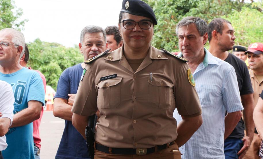 “Nós temos um olhar especial para Colorado, sabemos da importância de Colorado, a importância da sua população, e nós estamos olhando como um todo para o Estado, não somente para a Capital, mas prestando atenção, também, par ao Interior. Então um abraço, e obrigado por essas pessoas, essa comunidade tão importante, e que se preocupa com a sua própria segurança e que interage com as policias militares”, disse a Comandante-Geral da PM, coronel Audilene Rosa de Paula Dias Rocha.