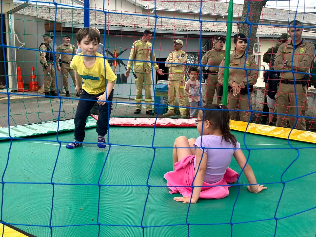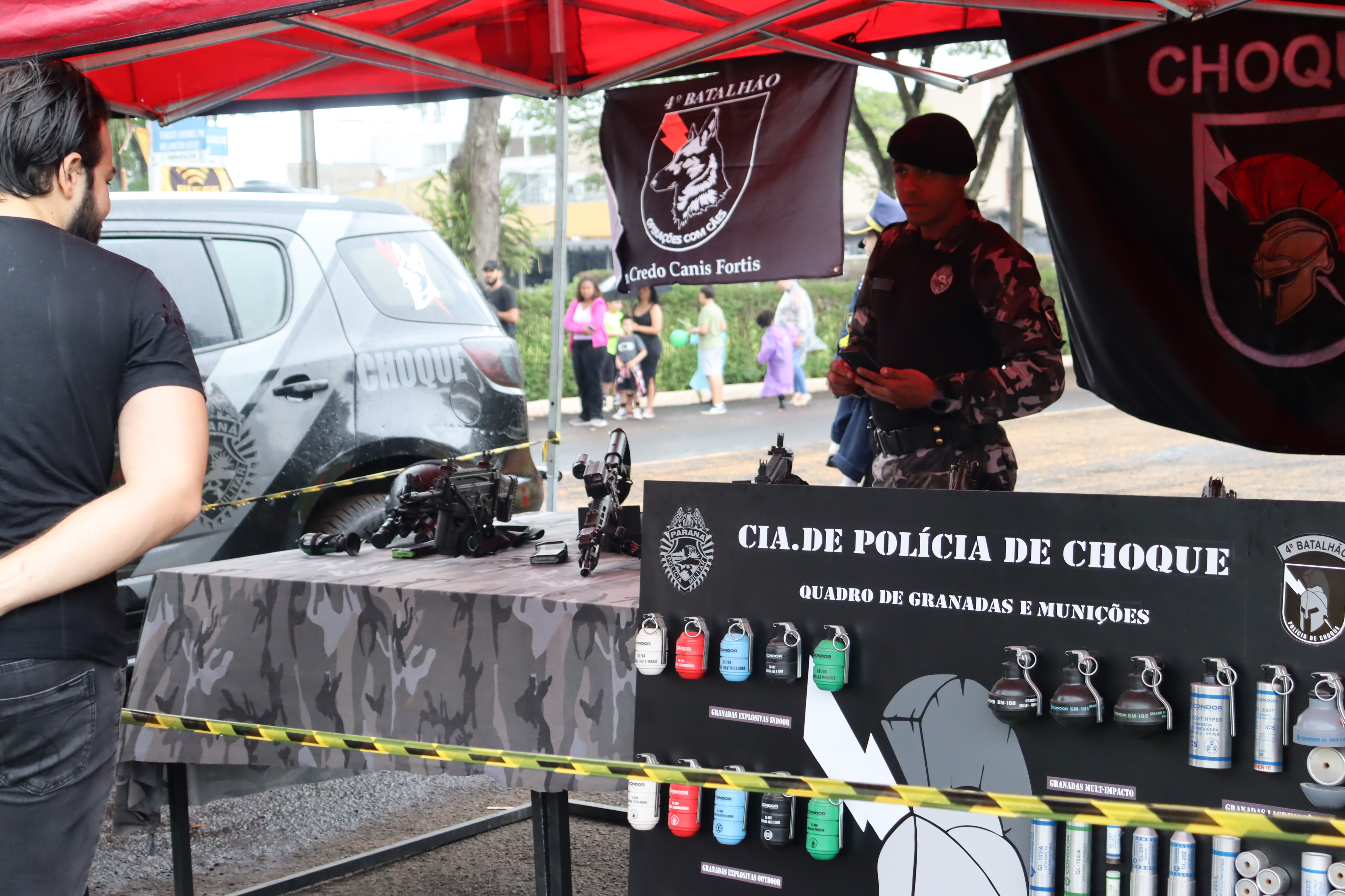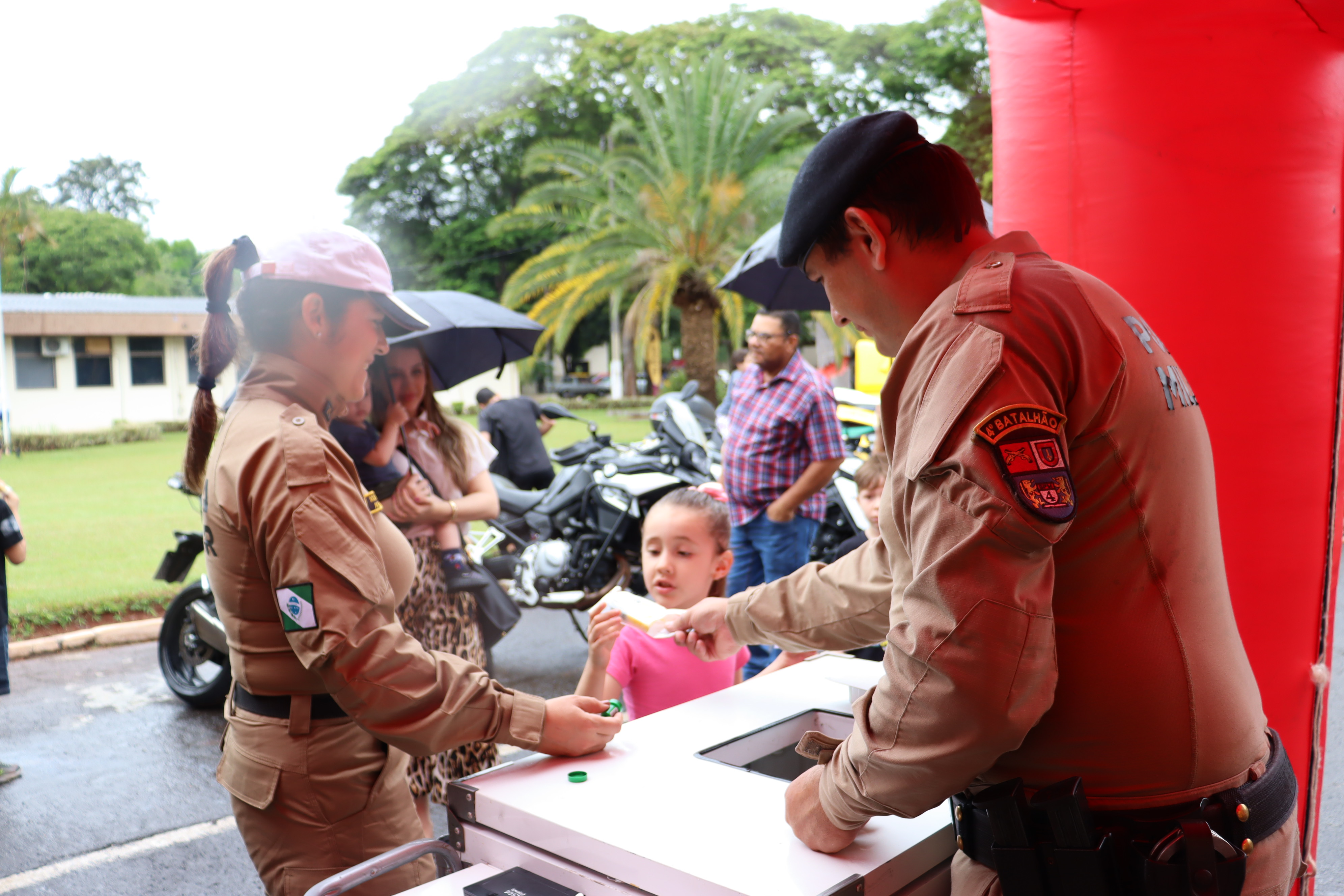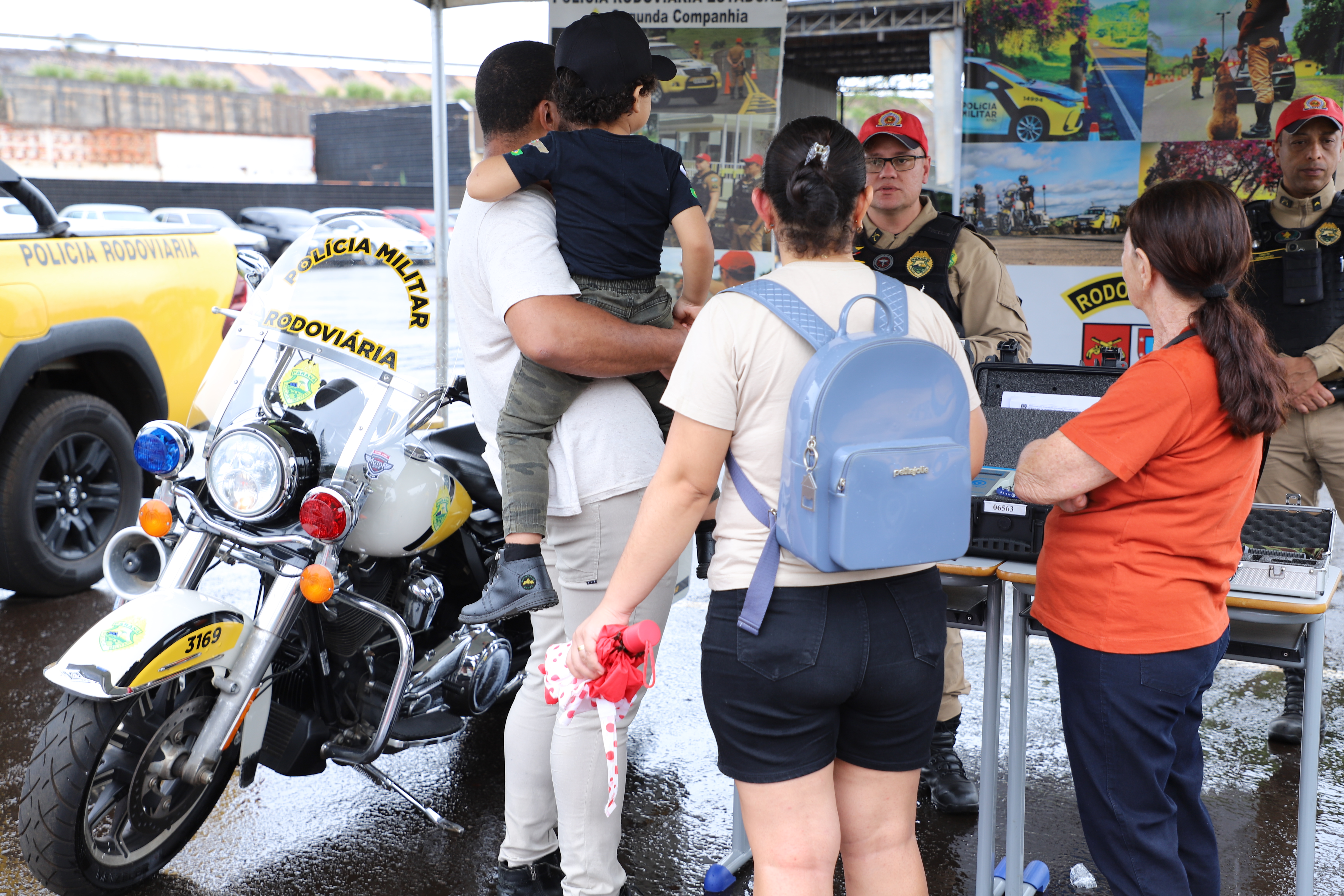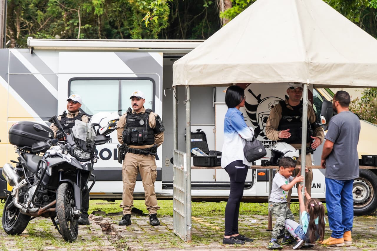INTERAÇÃO – O evento proporcionou aos paranaenses uma oportunidade única de conhecer de perto o trabalho diário da PMPR, com famílias participando de atividades voltadas especialmente às crianças, que puderam interagir com os policiais, conhecer equipamentos e vivenciar parte da rotina da corporação, além de muitas brincadeiras e diversão. Ao mesmo tempo, a ação fortaleceu o diálogo entre comunidade e policiais, permitindo conversas sobre segurança e a apresentação das diversas frentes de atuação da PMPR, com entrega de materiais educativos e brindes.