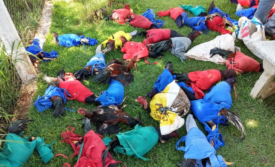 Segundo as informações do batalhão, uma denúncia anônima levou as equipes da Rondas Ostensivas Tático Móvel (ROTAM) e da Radiopatrulha (RPA) a um sítio na região rural de Ariranha do Ivaí. Lá, os policiais militares surpreenderam um grupo de pessoas que fazia apostas para os combates entre os galos. Ao perceberem a chegada das viaturas, as pessoas fugiram pelo matagal, mas 19 acabaram detidas.