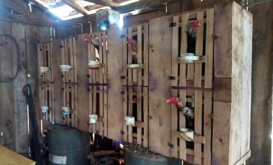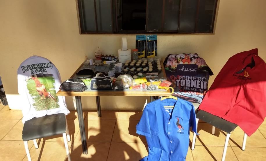 Na propriedade as equipes encontraram 75 galos ainda vivos, com ferimentos ocasionados pelas lutas, além de curativos, materiais veterinários e acessórios utilizados nas rinhas. Também havia 12 carcaças de aves, duas espingardas de calibre .32 e .22, um revólver de calibre .38 com cinco munições intactas, R$ 5.634,00 em dinheiro e mais materiais.