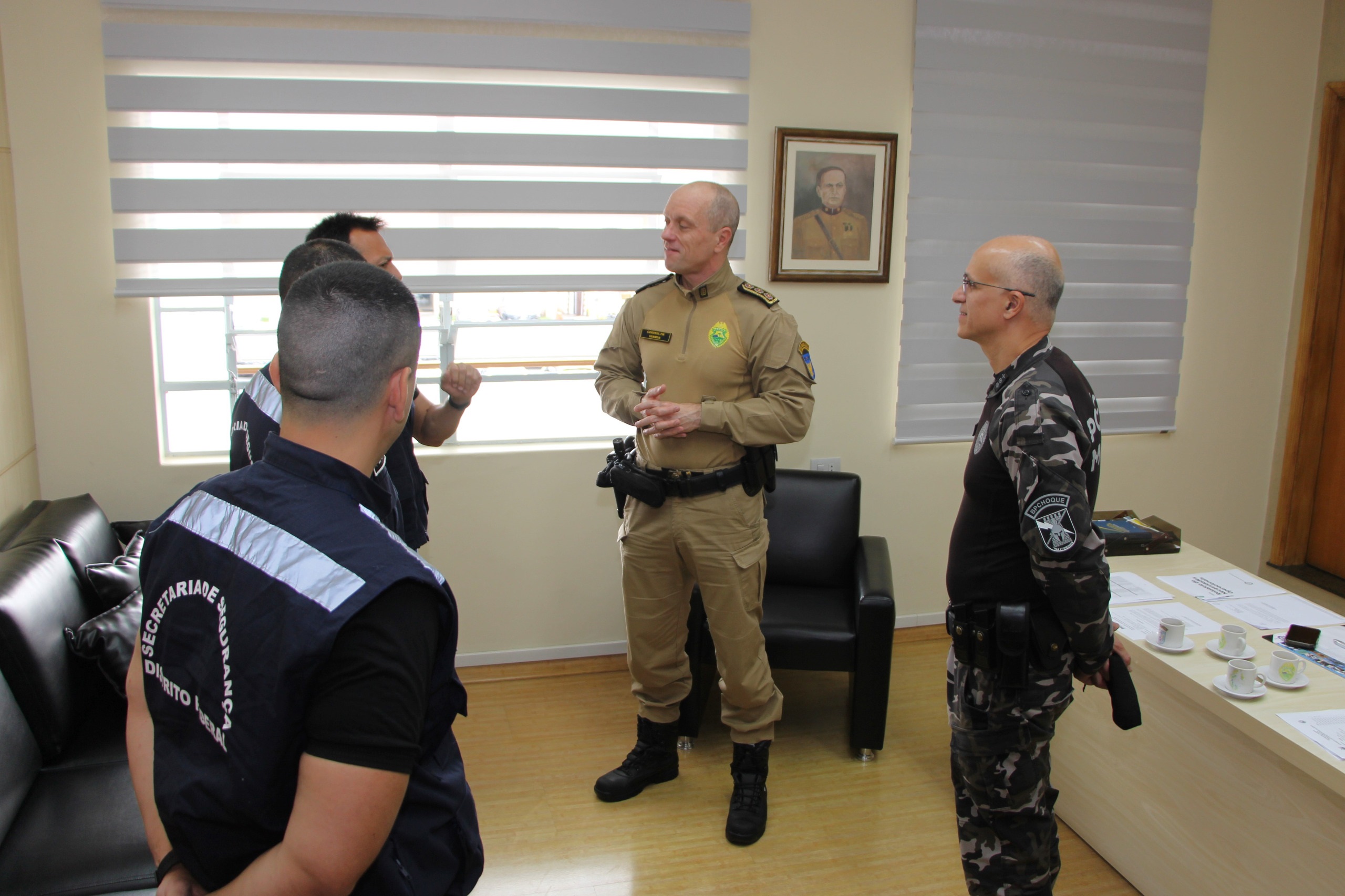 Após o encontro no Gabinete que contou também com a presença do tenente-coronel Fábio Bonifácio, o tenente-coronel Keldison Almeida de Souza, coordenador de Planejamento da Subsecretaria de Operações Integradas da Secretaria de Segurança Pública do Distrito Federal, destacou que a visita tem como propósito observar o modelo de atuação da PMPR e aplicar boas práticas em grandes eventos esportivos realizados em Brasília. “A Polícia Militar do Paraná tem se destacado pela eficiência na gestão de segurança em estádios, e queremos compreender como essa atuação é feita, desde o planejamento até a execução”, afirmou o tenente-coronel Keldison.