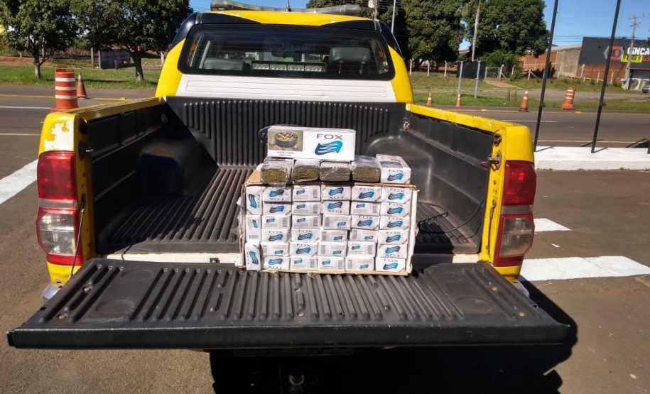As drogas foram achadas dentro do bagageiro do veículo. Ao todo, eram 41 tabletes de maconha, que estavam embalados e escondidos dentro de caixas de cigarro. Após a pesagem dos ilícitos, os policiais contabilizaram 34 quilos aproximadamente.