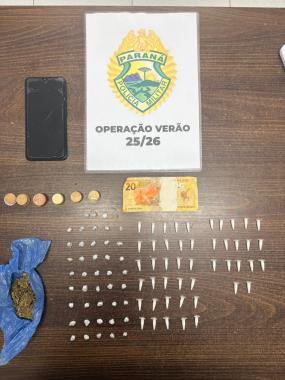 10:52 Operação Verão, PMPR PMPR apreende cocaína, crack e maconha durante ação contra o tráfico em Matinhos Ao final da ação, foram apreendidos 47 pinos de cocaína, 43 pedras de crack, 11 gramas de maconha, R$ 23,00 em dinheiro e um celular Compartilhe: